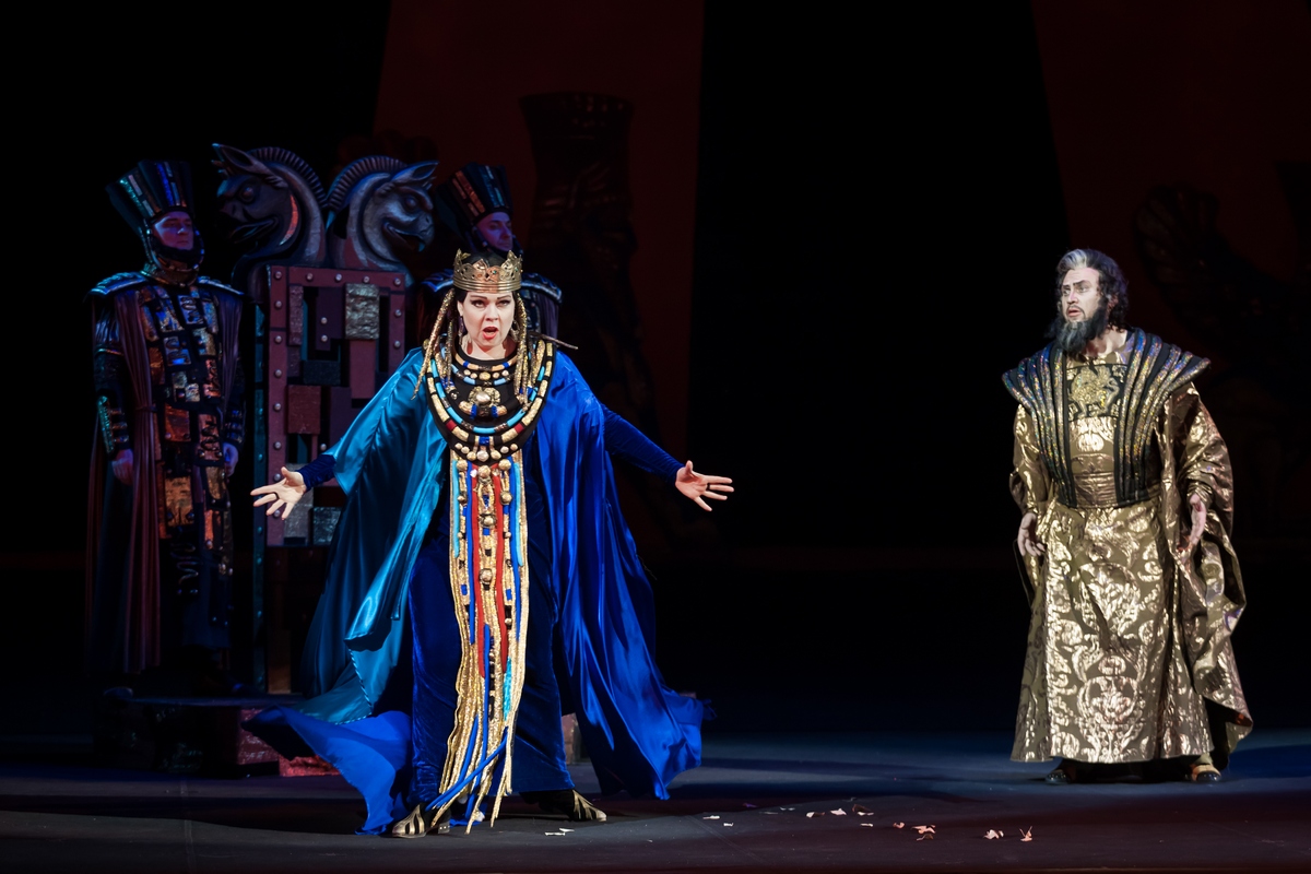 Deeply disturbed by Ismaele’s betrayal, the Hebrews curse him, while Anna, Fenena’s sister, stands for Ismaele. Fenena enters accompanied by Zaccaria. Being appointed regent of the city and being informed of Nabucco’s death, she grants freedom to the imprisoned Hebrews and accepts the Hebrew faith in order to return to Jerusalem with them. The High Priest of Bel glorifies Abigaille and demands to kill the Hebrews. Abigaille tries to snatch the King’s Crown from Fenena. At this moment, Nabucco enters the throne room. He seizes the Crown and proclaims himself to be God. Suddenly, lightning hits the crown. God punishes the King by robbing him of his mind. The Crown is picked up by Abigaille.